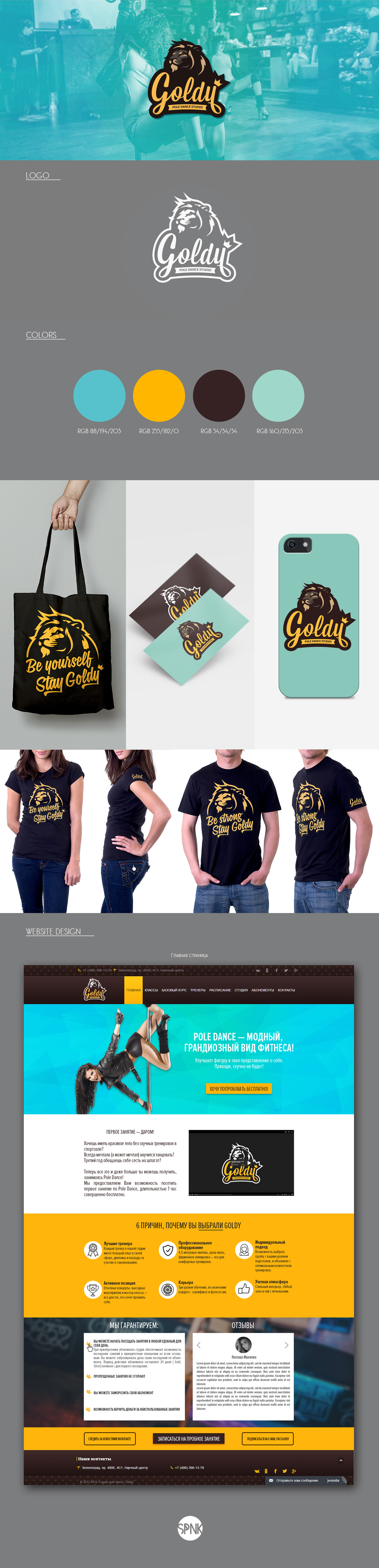 В этот раз мы предлагаем Вам познакомиться с этапами создания и применения логотипа для студии танца на пилоне, а также непосредственно с самой студией «Goldy».