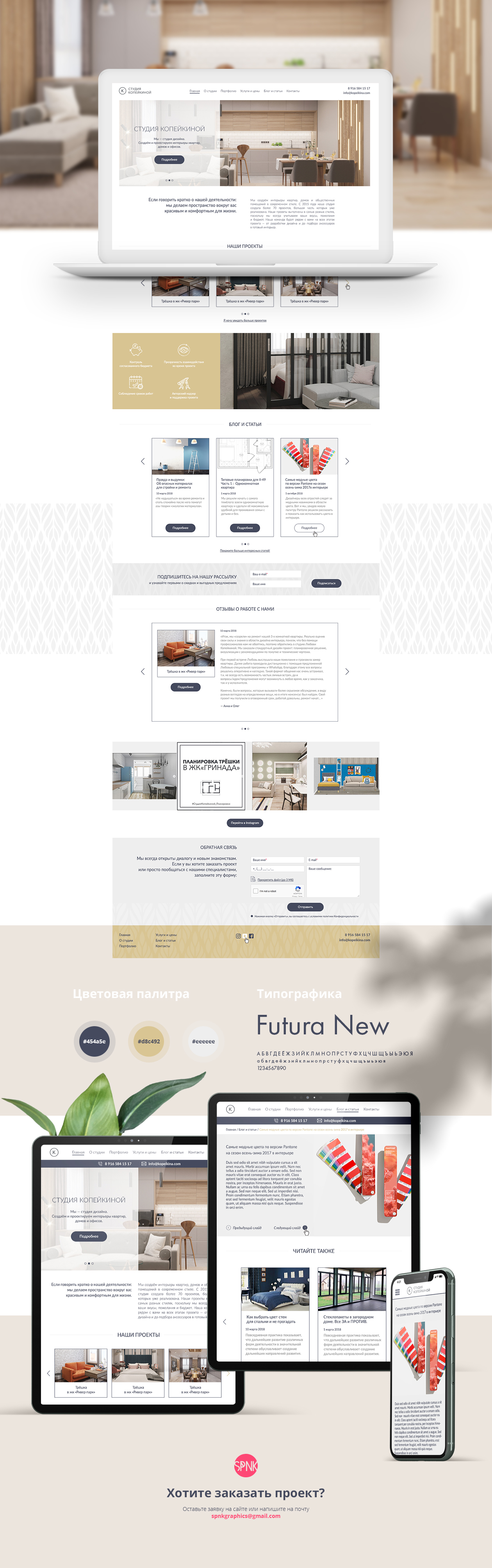 Студия Копейкиной — это удивительно дружный коллектив специалистов, выполняющих каждый свой проект с любовью и вниманием к деталям. Любови Копейкиной удалось собрать под крылом студии дизайнеров интерьера, технических дизайнеров, а также 3д-визуализаторов — между участниками коллектива царит полное взаимопонимание и готовность помочь коллеге в любой сложной рабочей ситуации. Возможно, именно из-за существующего подхода к рабочему процессу (еще из-за высокой проработки проектов и персонального подхода к каждому клиенту) у студии большое количество проектов в работе, а очередь на новые проекты расписана на год вперёд. Мы давно дружим с Любовью и её коллективом, поэтому были рады обновить сайт студии под новое видение руководителя. Перейдите по ссылке ниже, чтобы посмотреть готовый сайт в работе :)